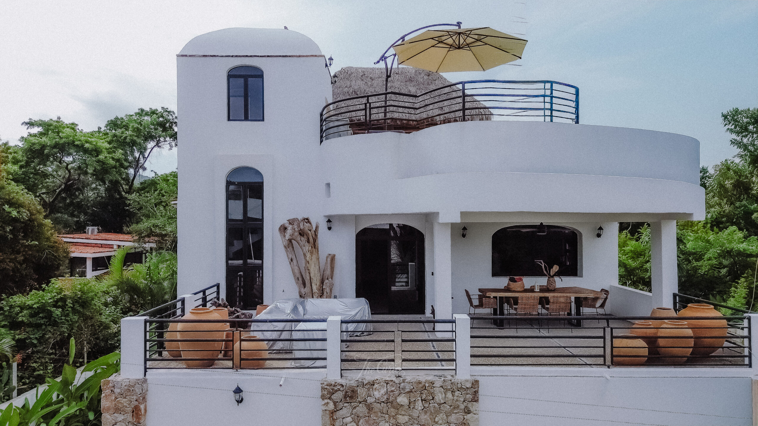 La casa se encuentra en Chacala, Nayarit, en un entorno natural privilegiado, con vista al mar, rodeada de selva y a minutos de pueblos mágicos y atracciones locales.
